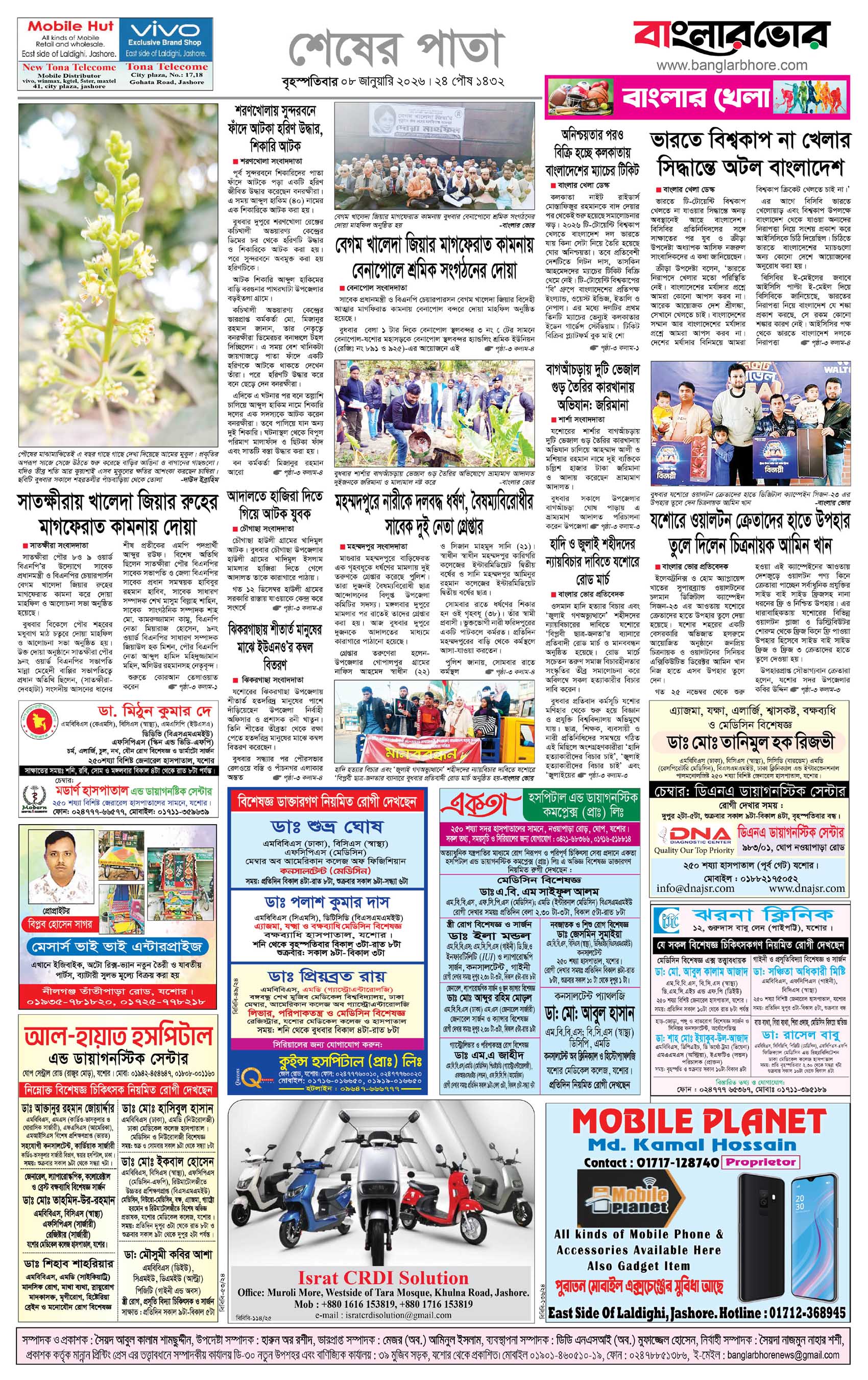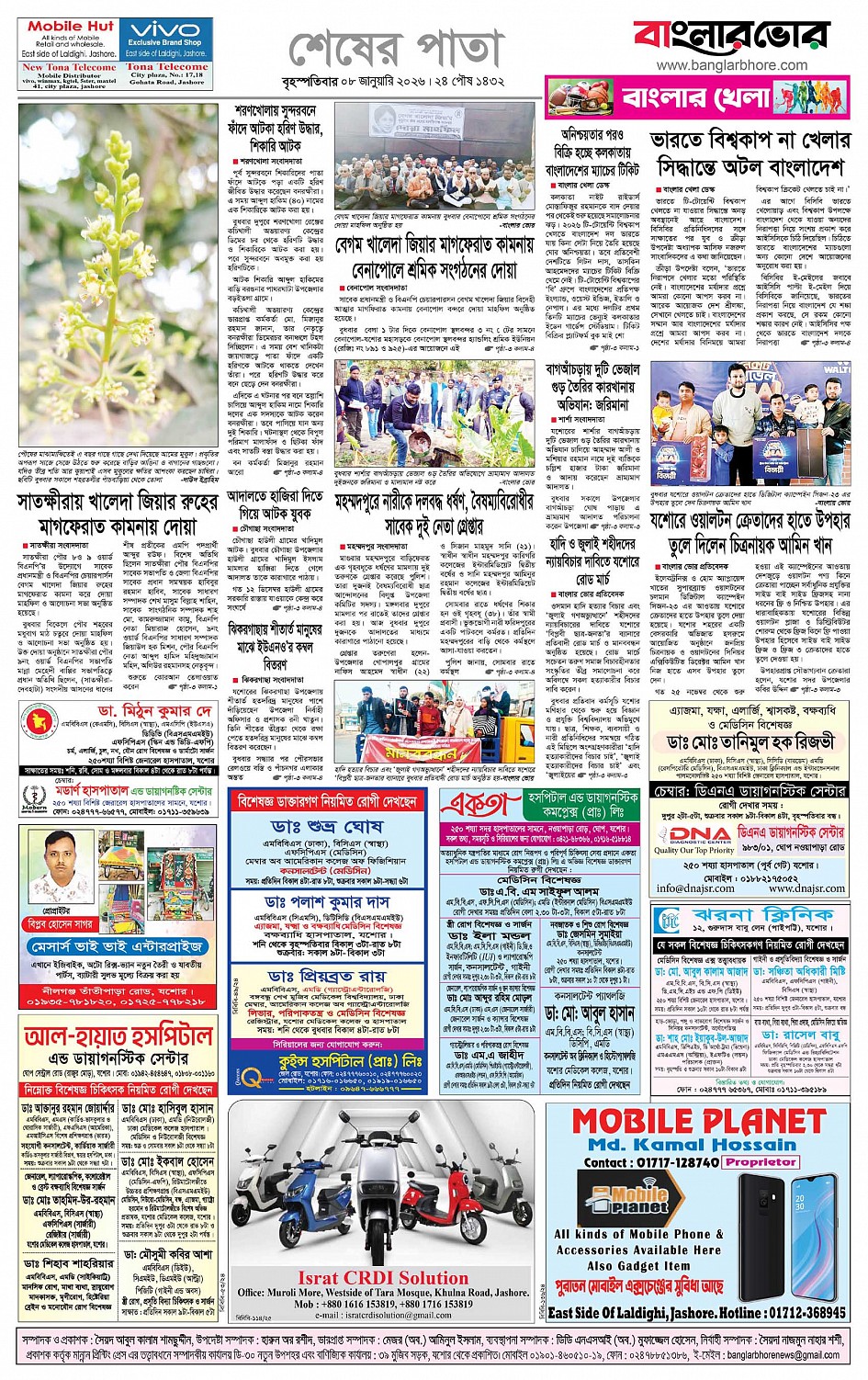 বৃহস্পতিবার, ০৮ জানুয়ারী ২০২৬, ২৫ পৌষ ১৪৩২